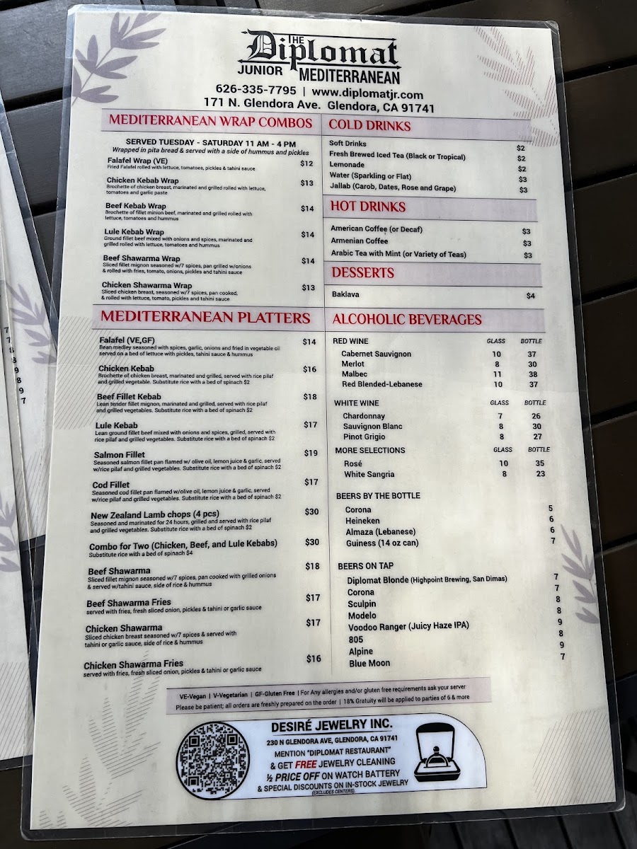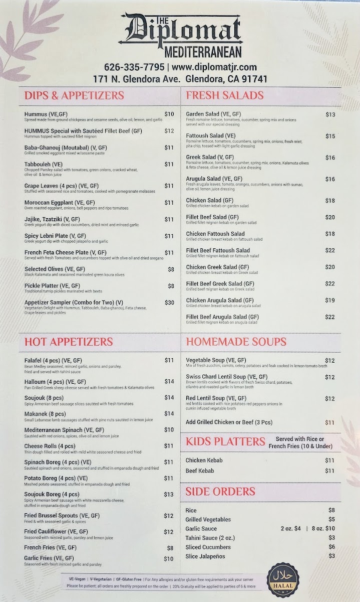 The menu at The Diplomat Junior offers a thoughtful selection of Mediterranean and Middle Eastern dishes with a focus on fresh, vibrant flavors and approachable comfort. Whether you’re seeking a light lunch, a relaxed dinner, or a midday coffee break, the menu caters to a variety of moments with simple yet satisfying options.